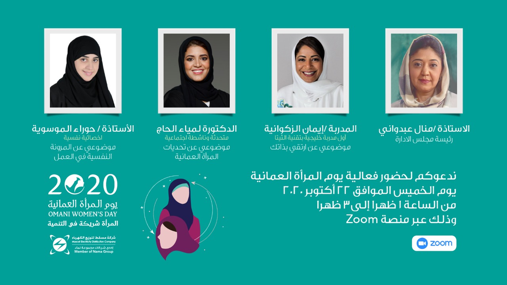 في إطار إحتفال شركة مسقط لتوزيع الكهرباء بيوم المرأة العمانية 2020، تشرفت بالدعوة من الشركة لإلقاء كلمة في هذه المناسبة التي تولي إهتمام كبير بالمرأة العمانية وتبرز الدور الكبير الذي تقدمه في بناء الوطن.